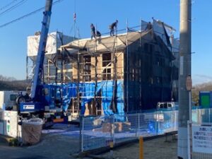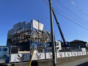 すがすがしい青空のもとM様邸の上棟が無事終わりました。
