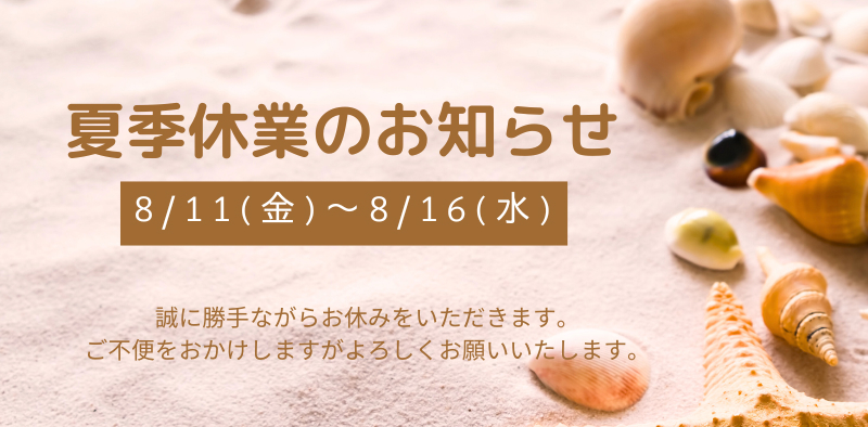 8/11(日)~8月16(金)夏季休業とさせていただ...