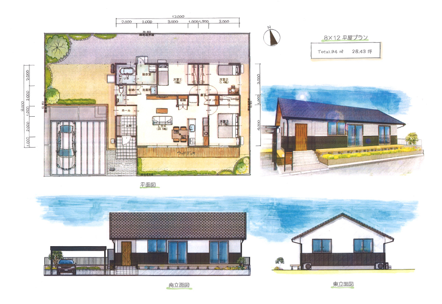 | 8×12 | 1F 94㎡(28.43坪) ・合計 94㎡(28.43坪) |