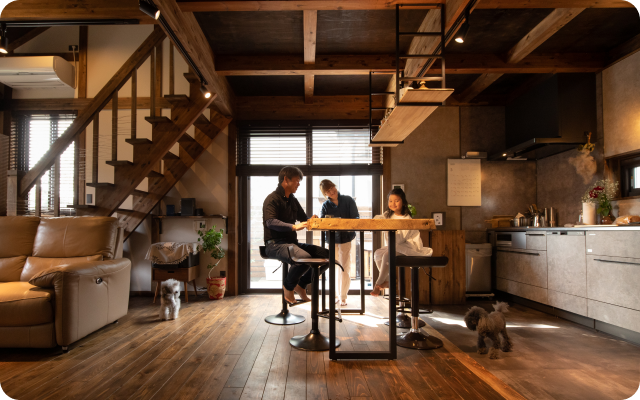 前を通るたびに気になっていた早島展示場に行き、スタッフの方たちの対応や、想像していた以上に素敵な木の家に好感を持てたのがきっかけです。開放感や雰囲気、玄関土間の広さ、背面キッチンと大きな窓にこだわり、その思いが叶いました。サイエンスホームさんとの最初の出会いから紆余曲折を経て3年という期間はかかりましたが、たくさんの間取り図を描いてくださり自分たちの理想を現実に近づけていただきました。親身になって完成へと導いてくださった社長、営業担当の方をはじめ、スタッフみなさんの支えのおかげで、納得の最高の家で幸せな日々を送っています。今は、昼でも夜でも庭から家を眺めながら、お茶やお酒を飲む時間が一番の楽しみです。
