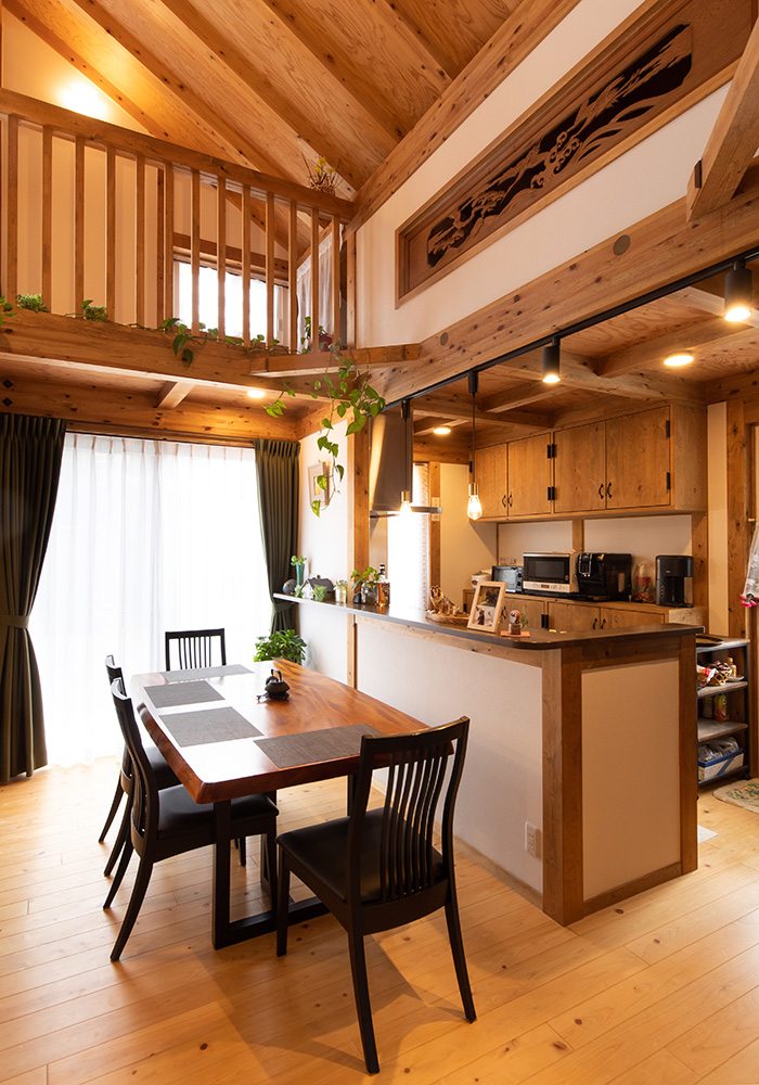 担当スタッフより:ご主人の隠れ家ルームや、古いお家の思い出の建具なども取り入れた唯一無二のお家になったのではないでしょうか。いつ訪ねてもプロ級のご主人のフォトパネルの数々が飾られ、家全体がギャラリーのようで素敵です!お手入れされたたくさんの観葉植物とひのきの家はとても相性が良く、サイエンスホームの家を存分に楽しんで生活してくださっているのだなと感じています。