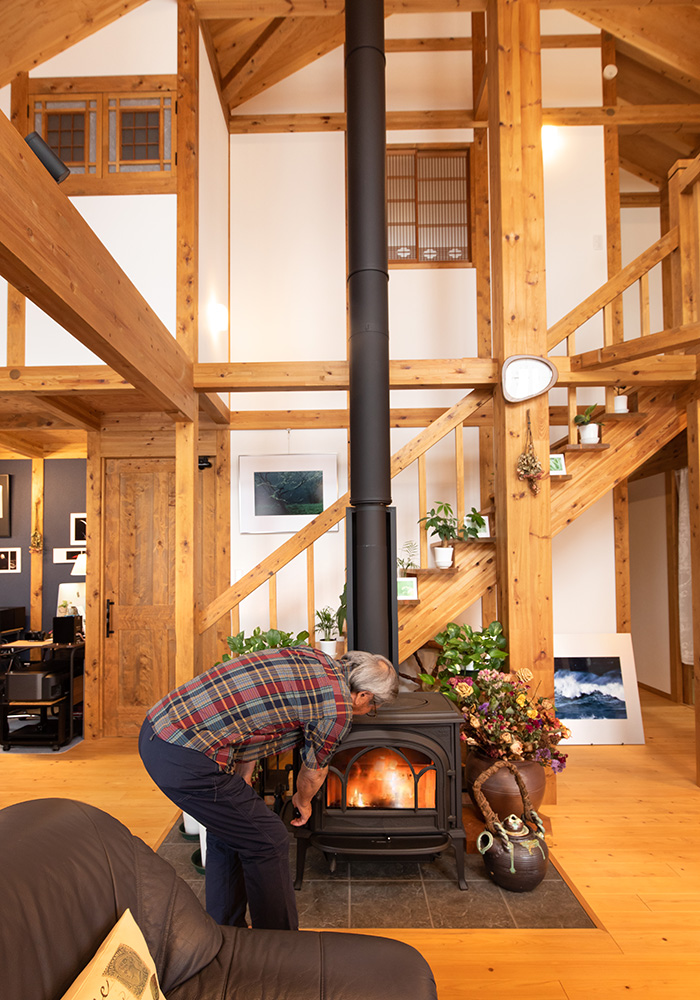 総ひのきや真壁づくりに感動し、サイエンスホームに依頼しました。平屋でも広い空間や、インテリアが楽しめる家を希望。薪ストーブがマッチしたリビングや、大黒柱のたくましさが大変気に入っています。吹き抜けの開放感、男の隠れ家的なマイルームも嬉しく、日々を楽しんでいます。家はもちろん、壁に飾った撮影写真の作品も、みなさんに見ていただきたいです。レイアウト変更やインテリアによる演出などを工夫をしながら毎日を大切に暮らしていきたいです。