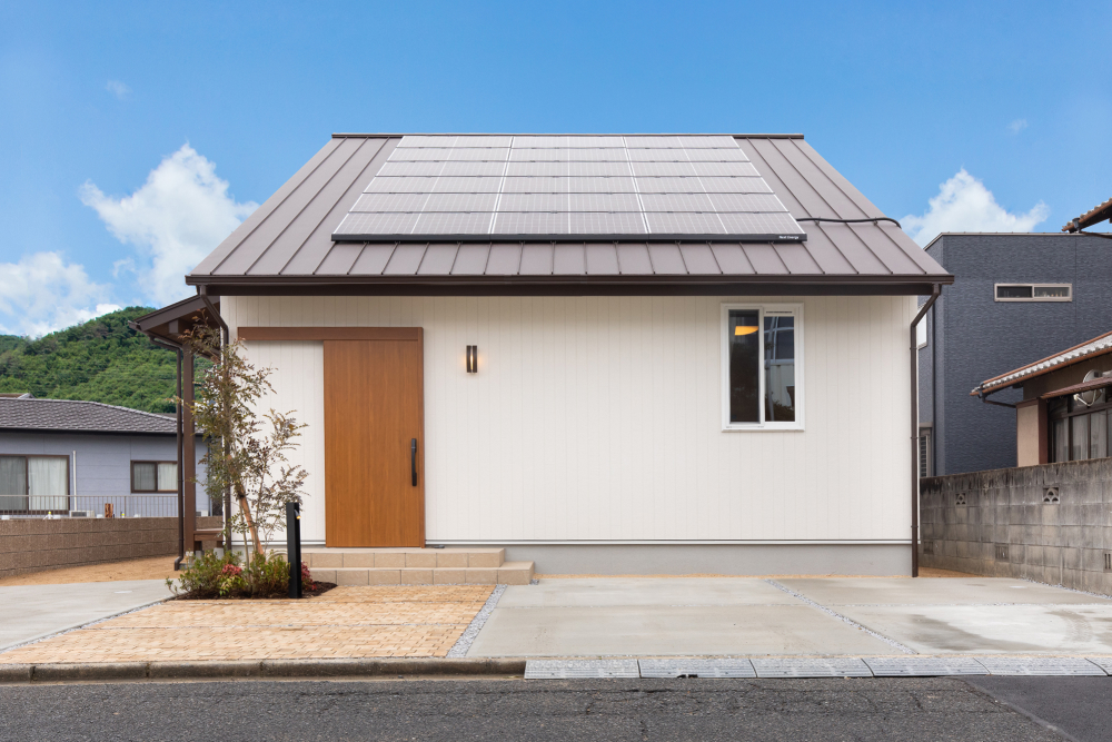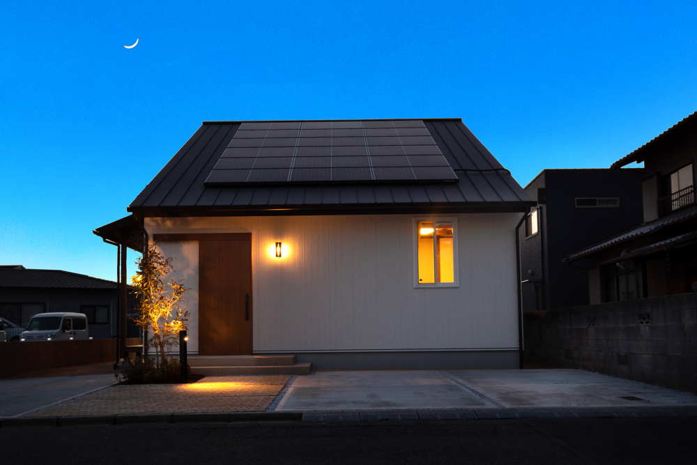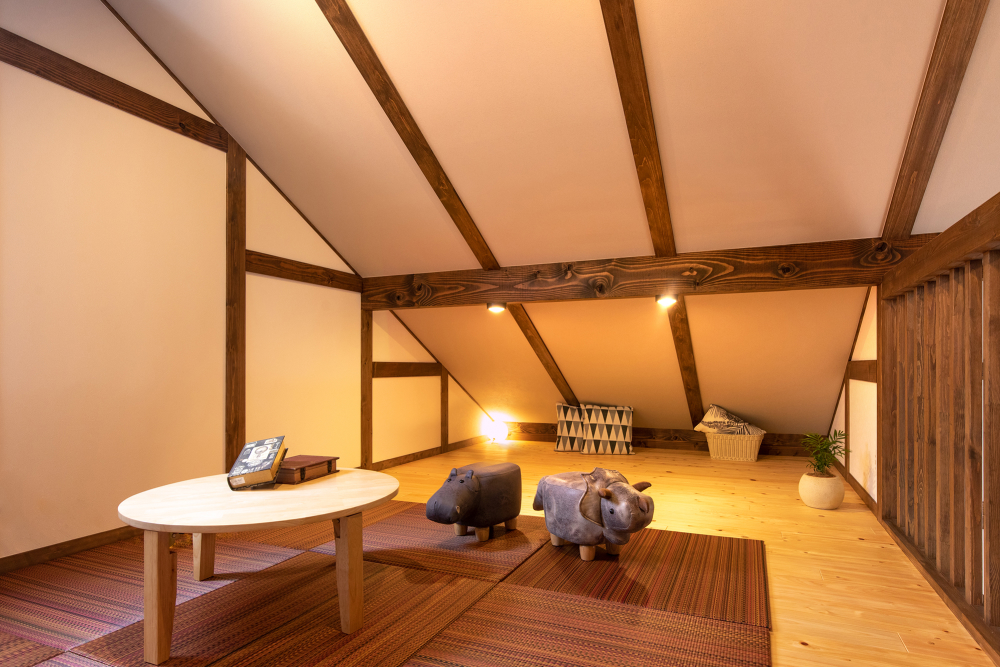 角地の好条件により、どの部屋も日当たりと風通しが良い快適なロフトの家。洋風なインテリアが馴染みやすい落ち着いた色合いに仕上がりました。リビングに入ると吹き抜けが広がり、家族とのコミュニケーションの取りやすい間取りは、子育て家庭にもぴったりです。無垢の素材をふんだんに使用し、素足でも気持ちの良い、夏は涼しく冬はポカポカのZEH仕様の家です。