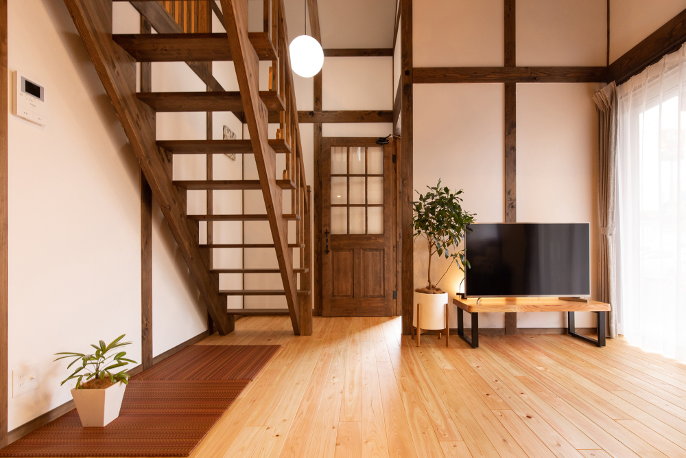 無垢材に囲まれたクラシックモダンなロフトタイプの家